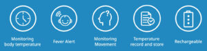 The Bluetooth Wearable Thermometer, model HMT-100 is a battery-operated electronic device with an intended use of measuring human armpit temperature and transmitting wireless signal of the measuring results to receiver, monitoring human body basal temperature.