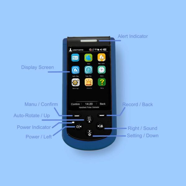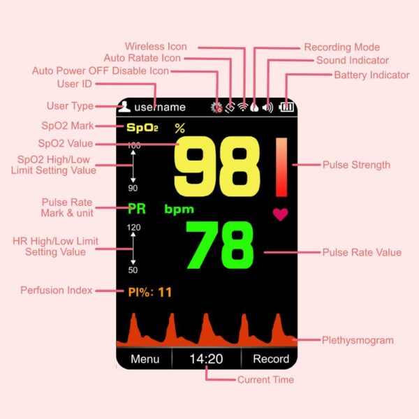• FDA registered pulse oximeter measures SpO2 and pulse rate accurately, with audible & visual alert for abnormal SpO2 & pulse rate.