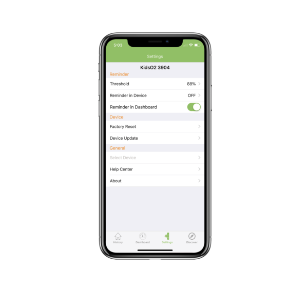 • APP and device alarm will remind you of low oxygen saturation. You can turn on/off the reminder and adjust the audio volume on your mobile APP and the device separately.