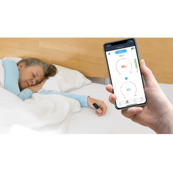 - Wearable oxygen monitor with the medically accurate sensor continuously records blood oxygen saturation, heart rate, and body movements.
